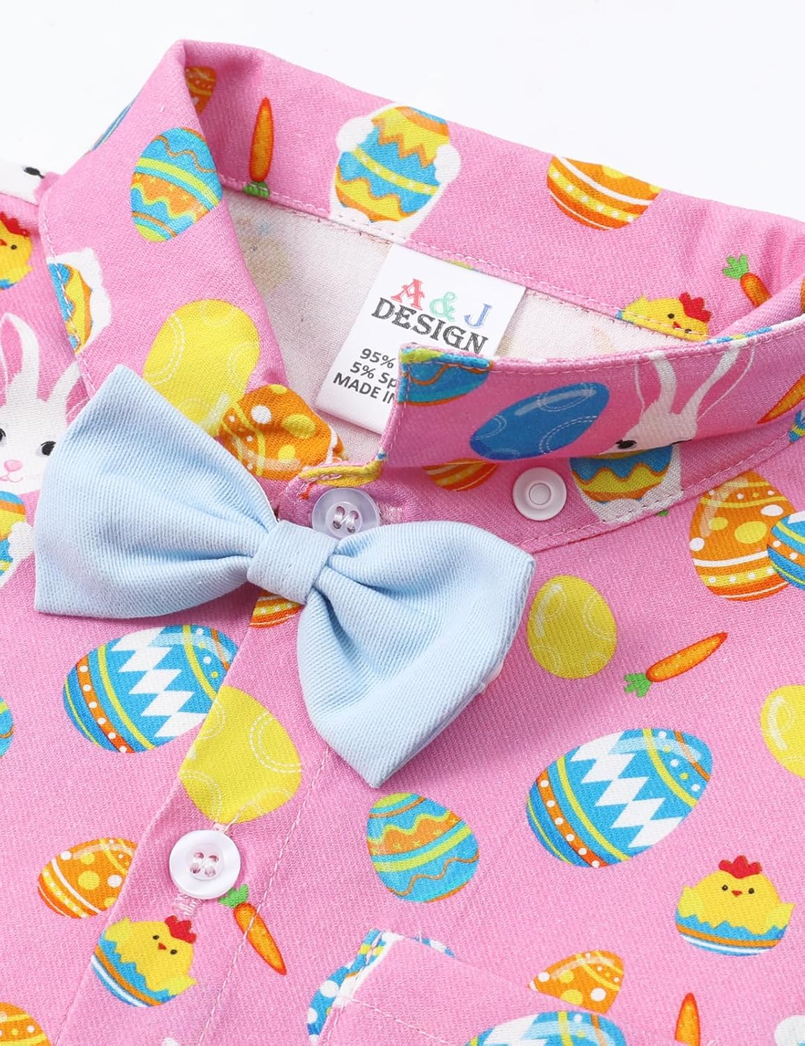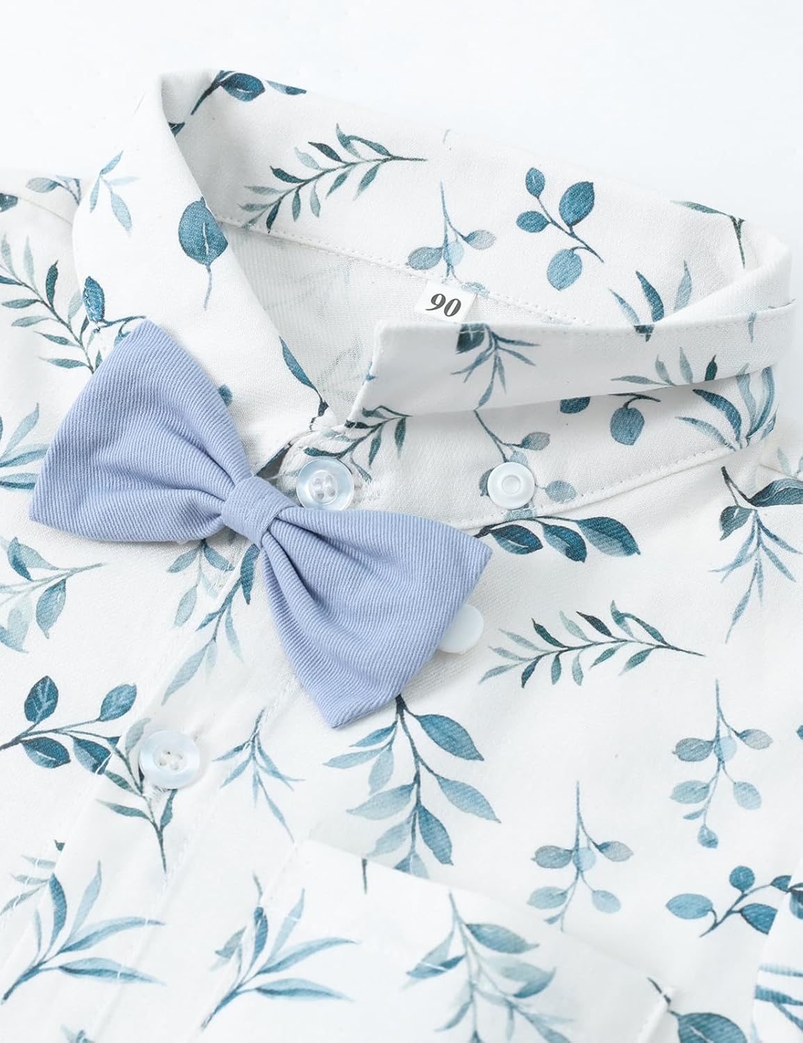 - Baby boys formal one piece romper is designed with short sleeve collared dress shirt and detachable bow tie.