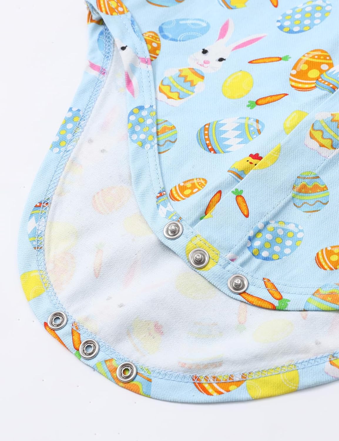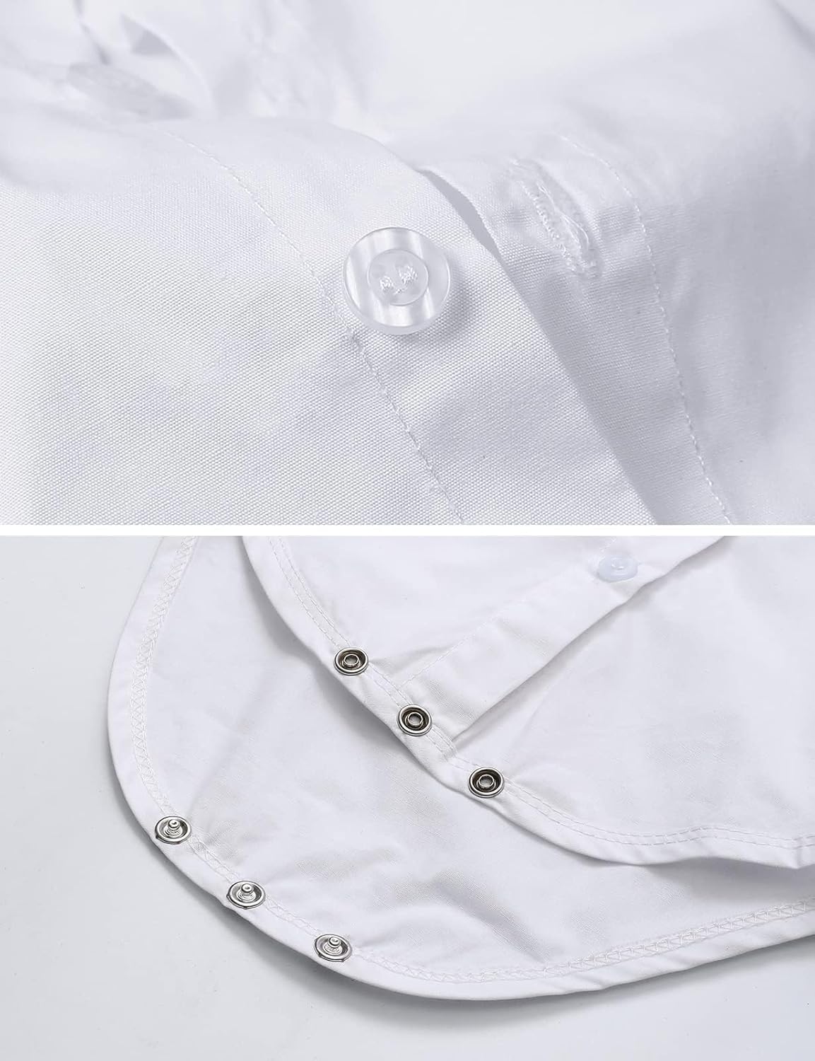 - Lapel design. Buttons at front and cuffs for easy wearing. Snap closures at bottom make it easy for you to change diapers.