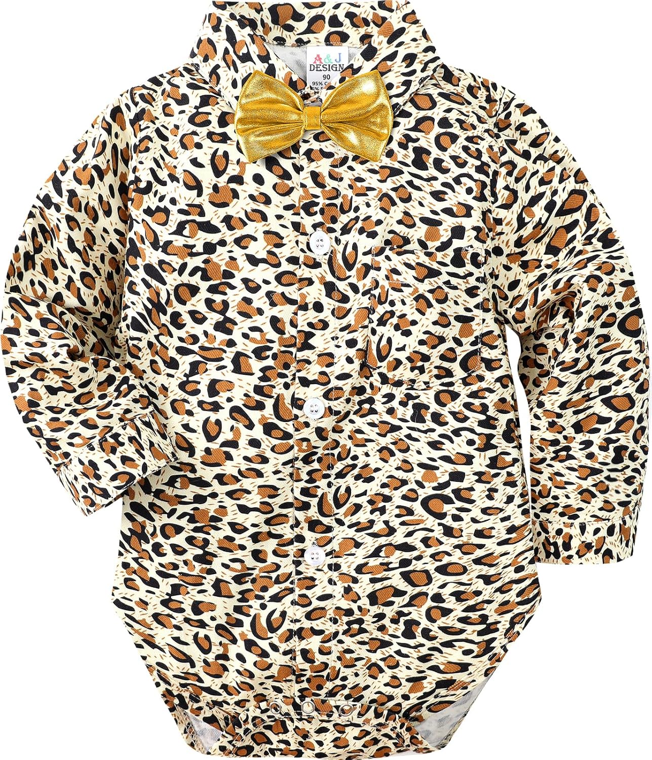 Baby boy dress shirt bodysuits are made of cotton. The material is stretchy, soft and comfortable.