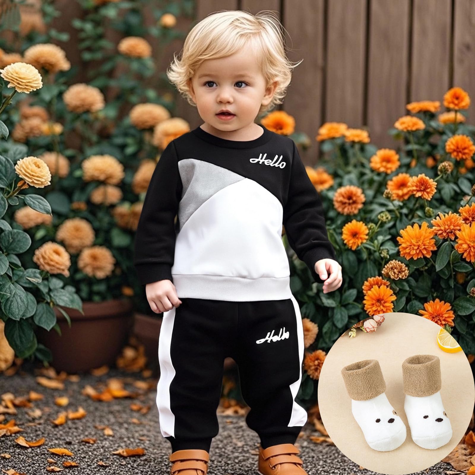- Package Including: Total 3-piece set, 1 x baby boy sweatshirt tops + 1 x sweatpants + 1 x Socks. Suitable for baby boys,best gift for your baby