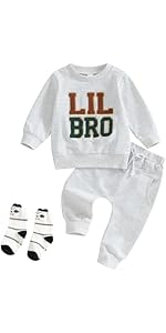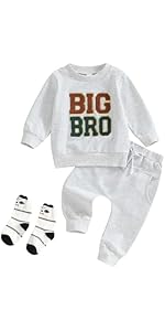 Ouliycoqi 3Pcs Toddler Big Brother/Little Brother Infant Baby Boys Clothing Long Sleeve Pullover Shirt Tops + Pants + Socks Fall Winter Outfits: