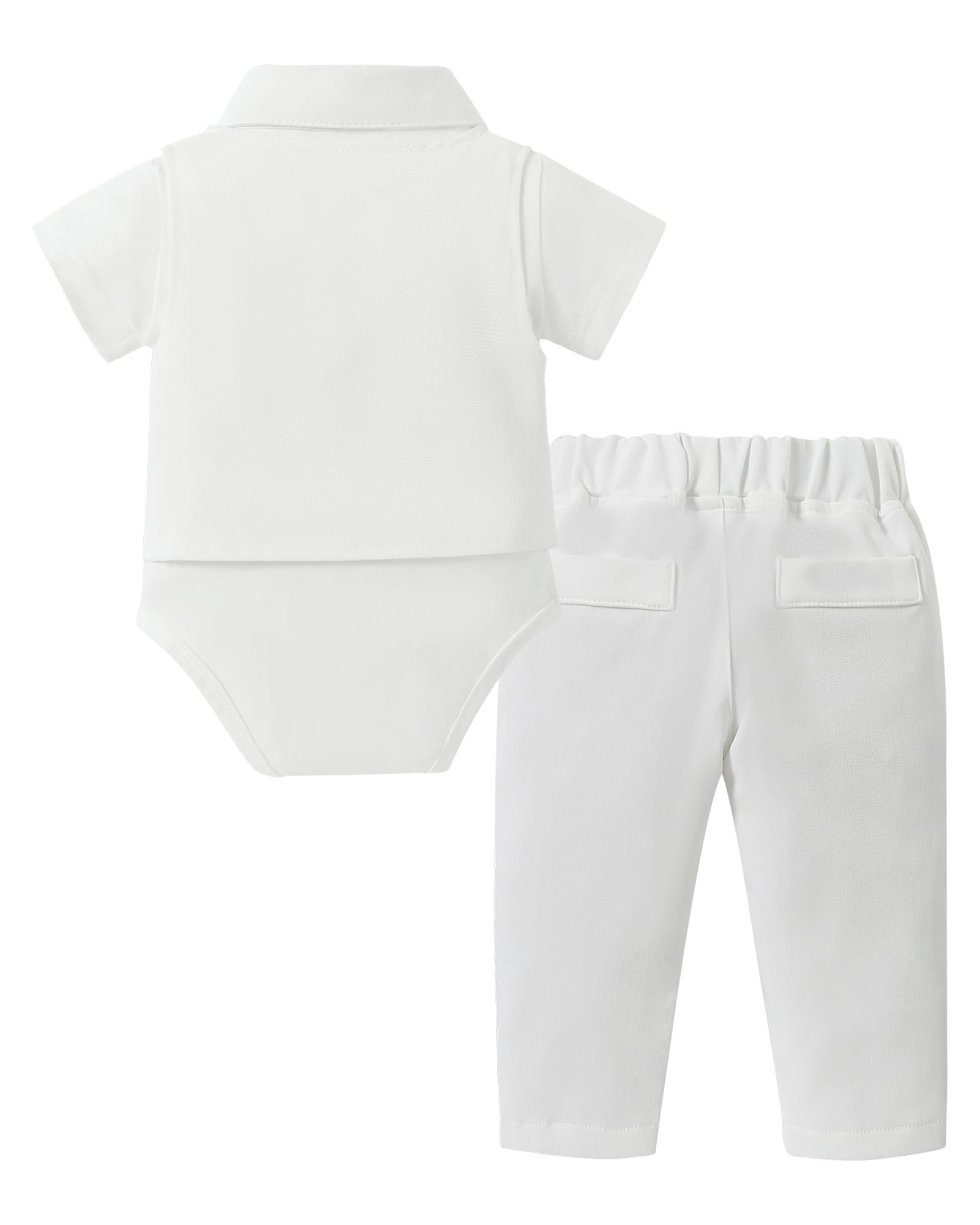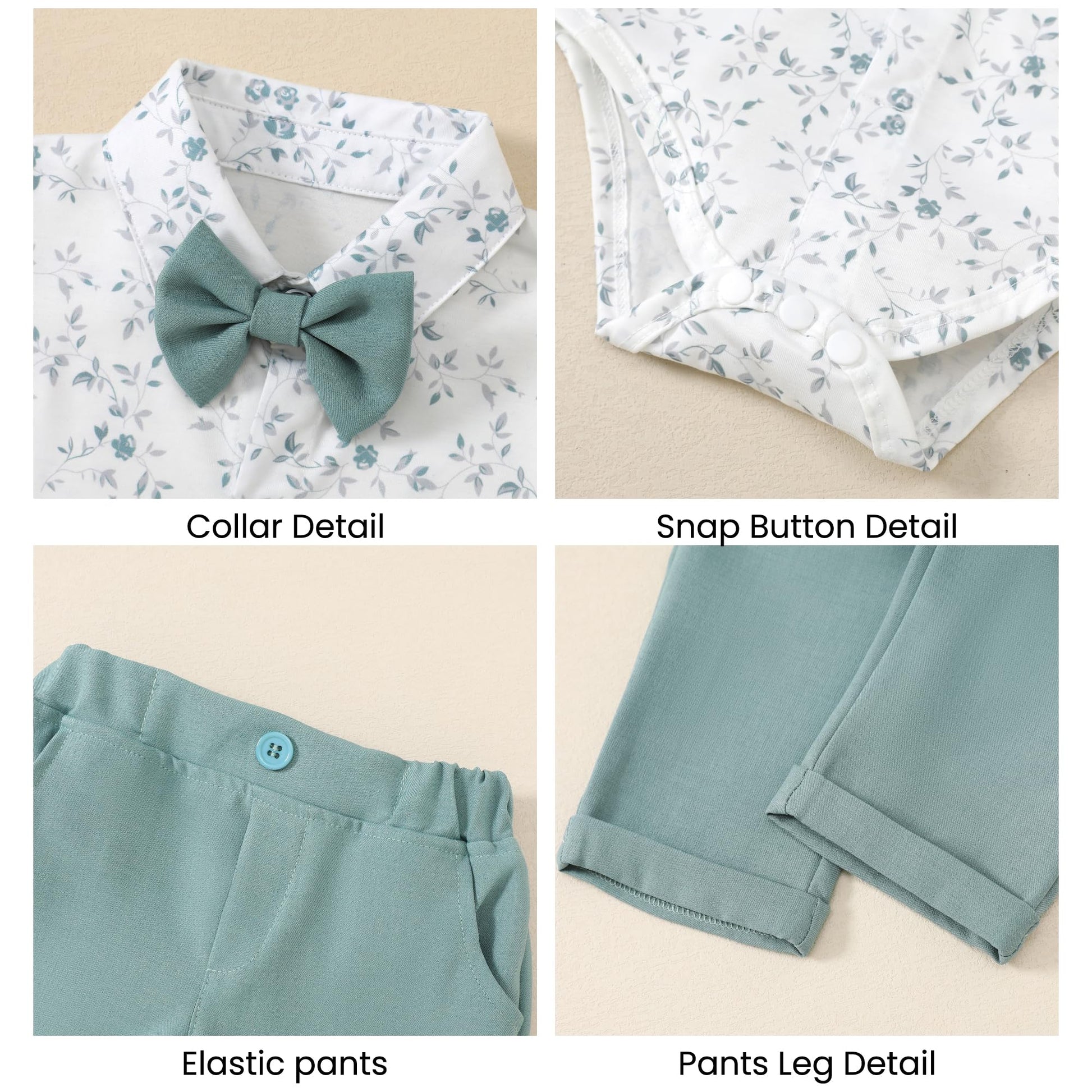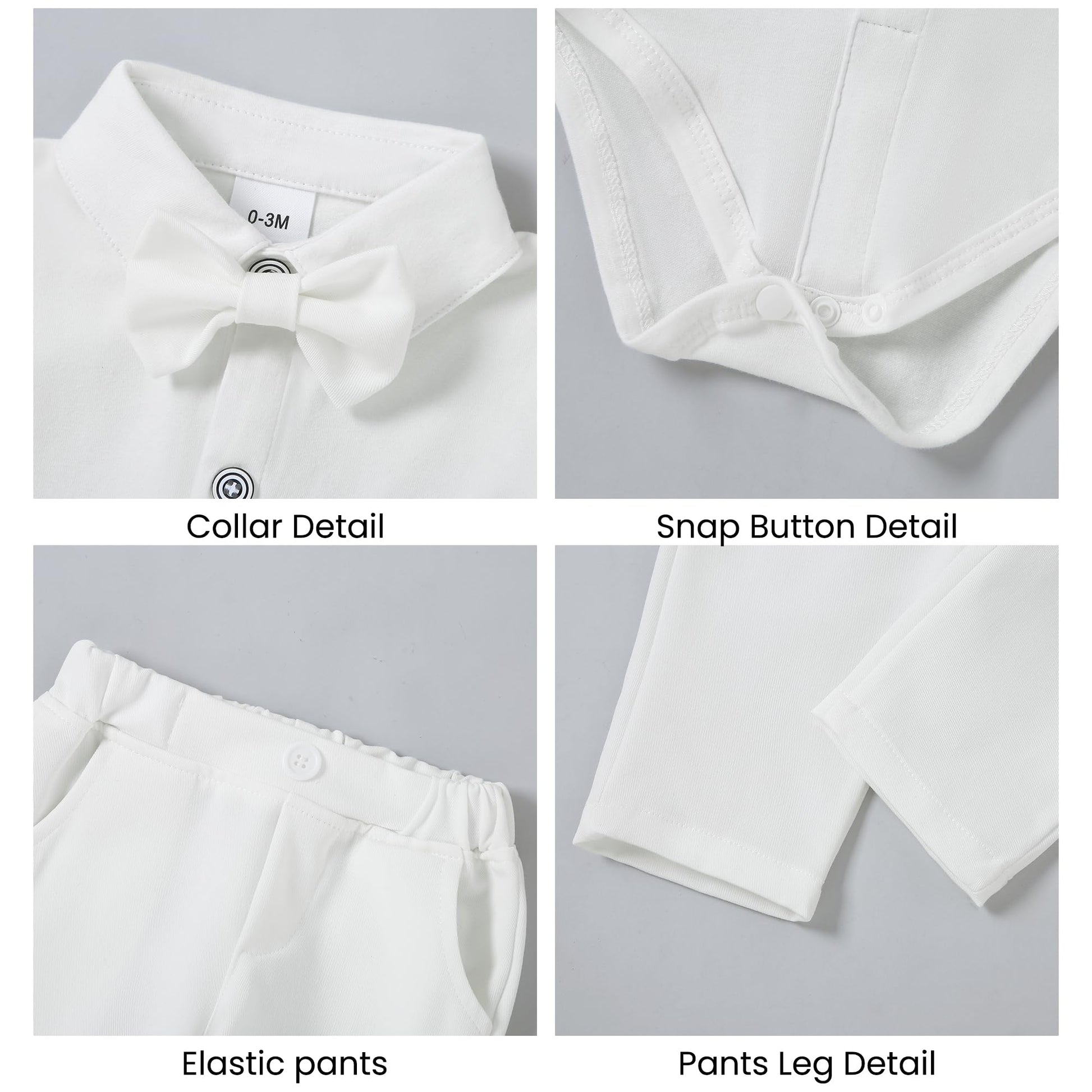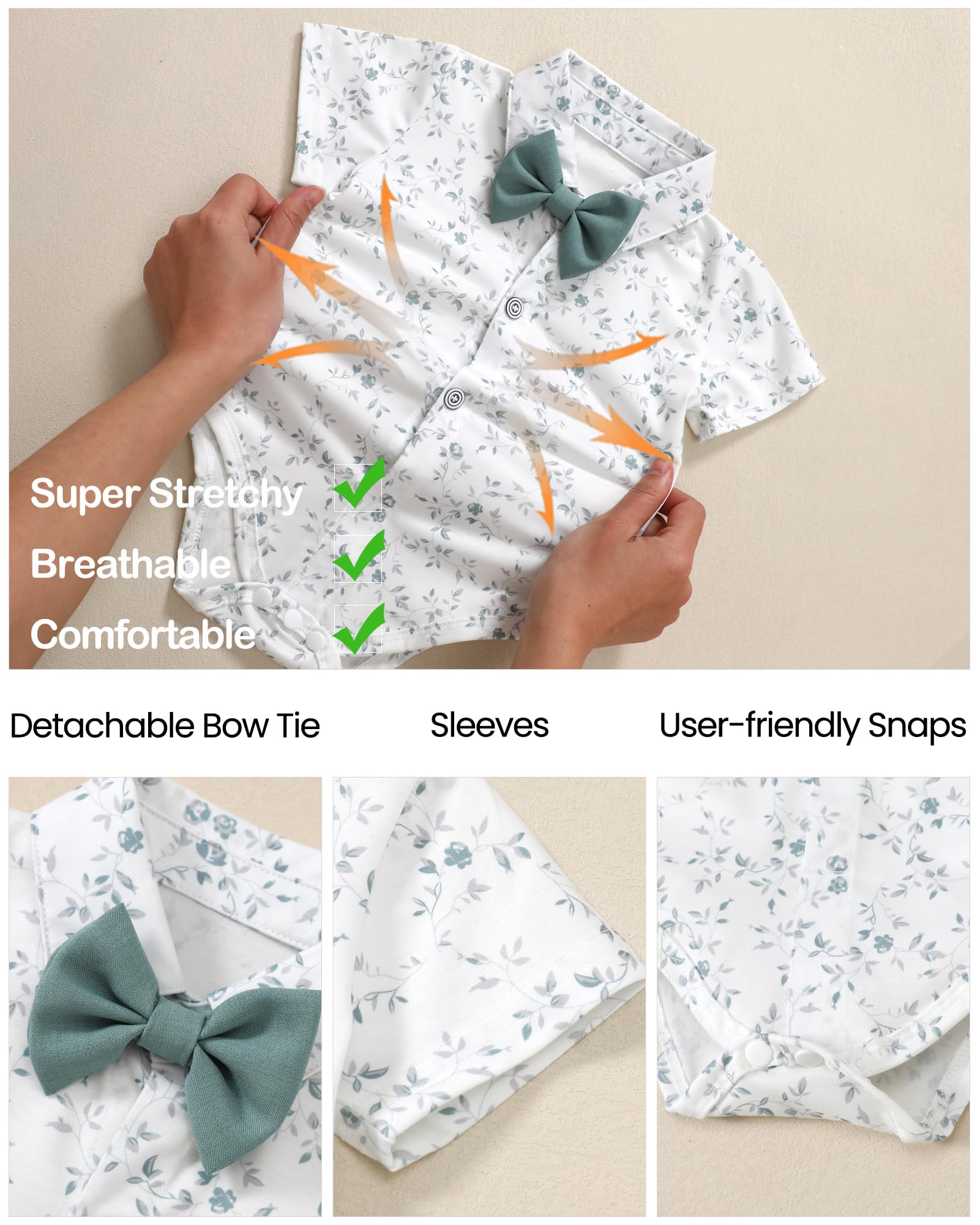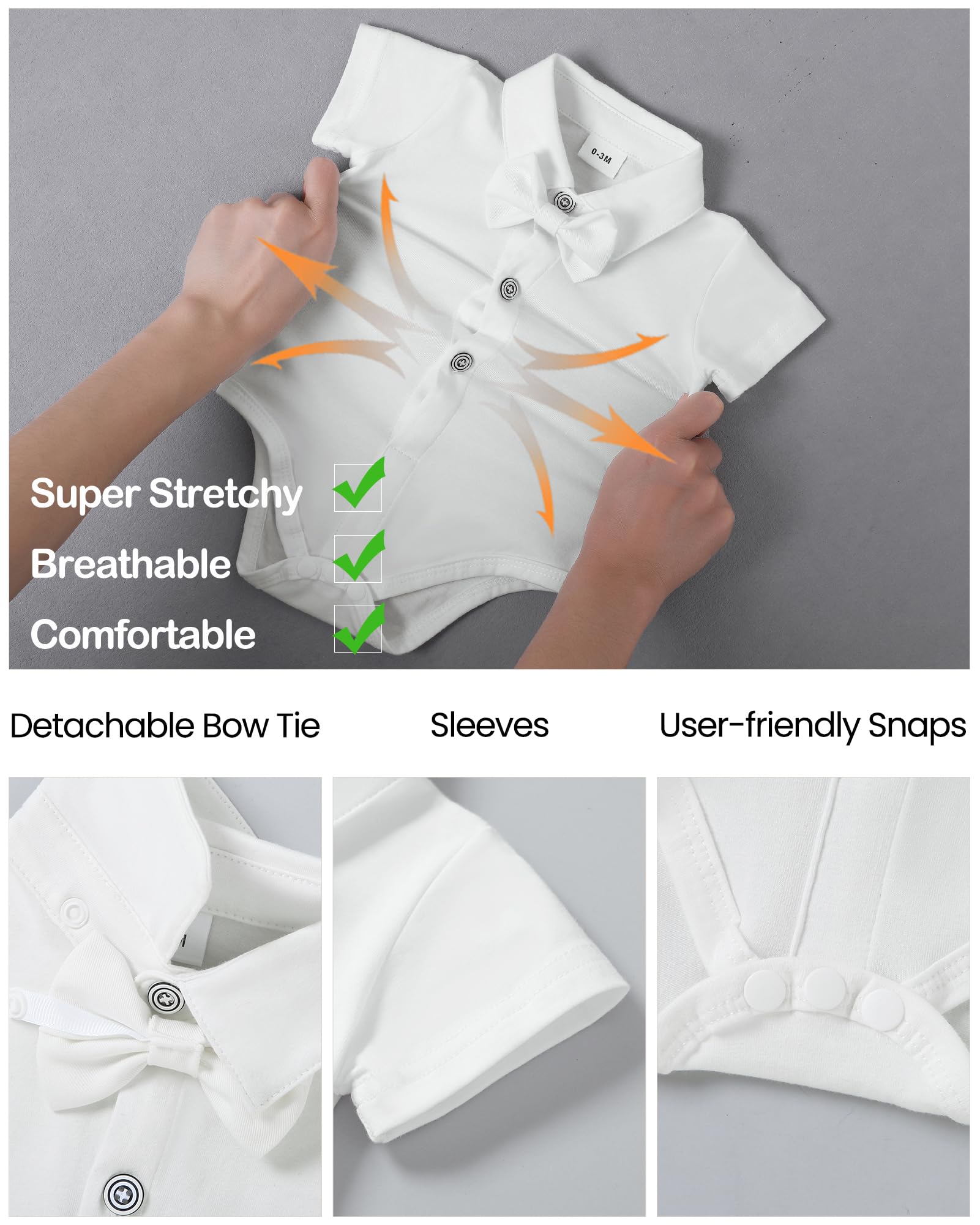 - √High Quality Material: Baby boy outfits are crafted from a premium cotton blend material that offers exceptional softness, breathability, skin-friendly and and comfortable. The top with removable bow and buttons at the bottom of the shirt for easy diaper changes, practical and convenient.